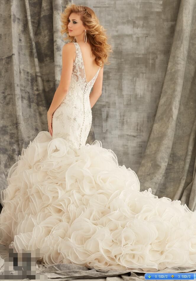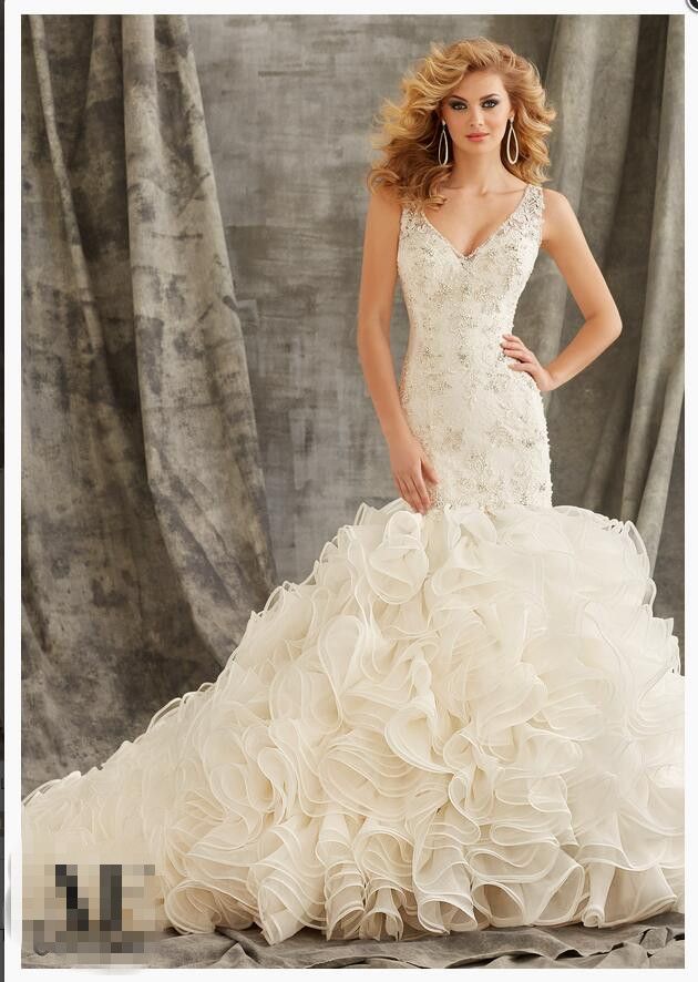 2017 Crystal Beaded Organza Ruffled Wedding Dress WD1354