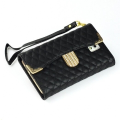 Galaxy Note 3 Case Tradekmk(TM) Luxury Gold Edge Bling Crystal Design Superior Soft Grid Leather Wallet Case Cover Compatible with Samsung Galaxy Note