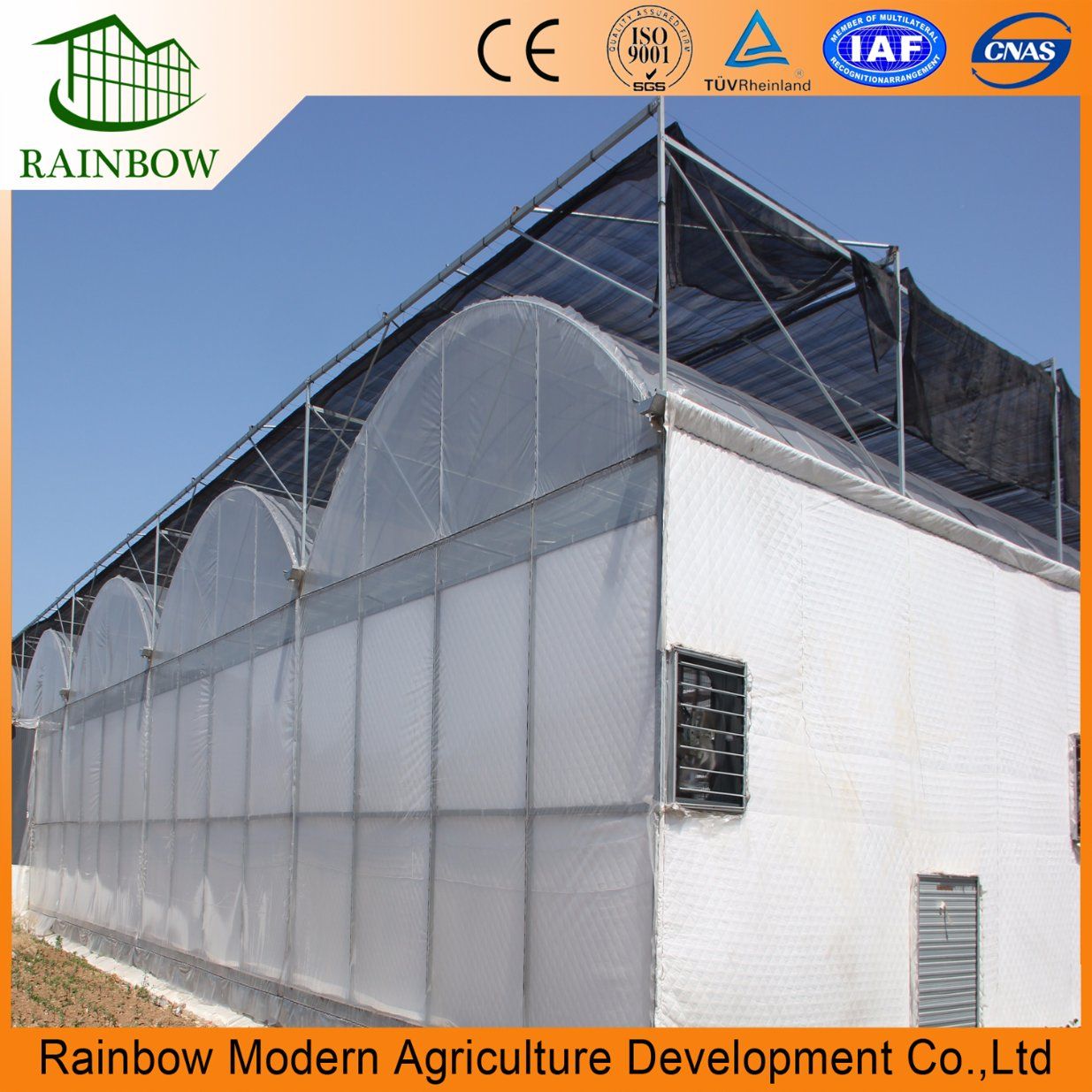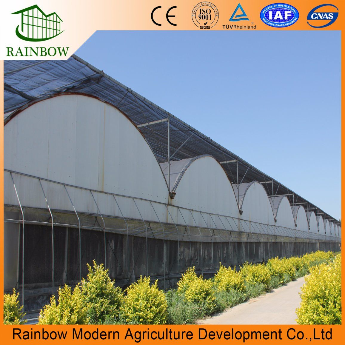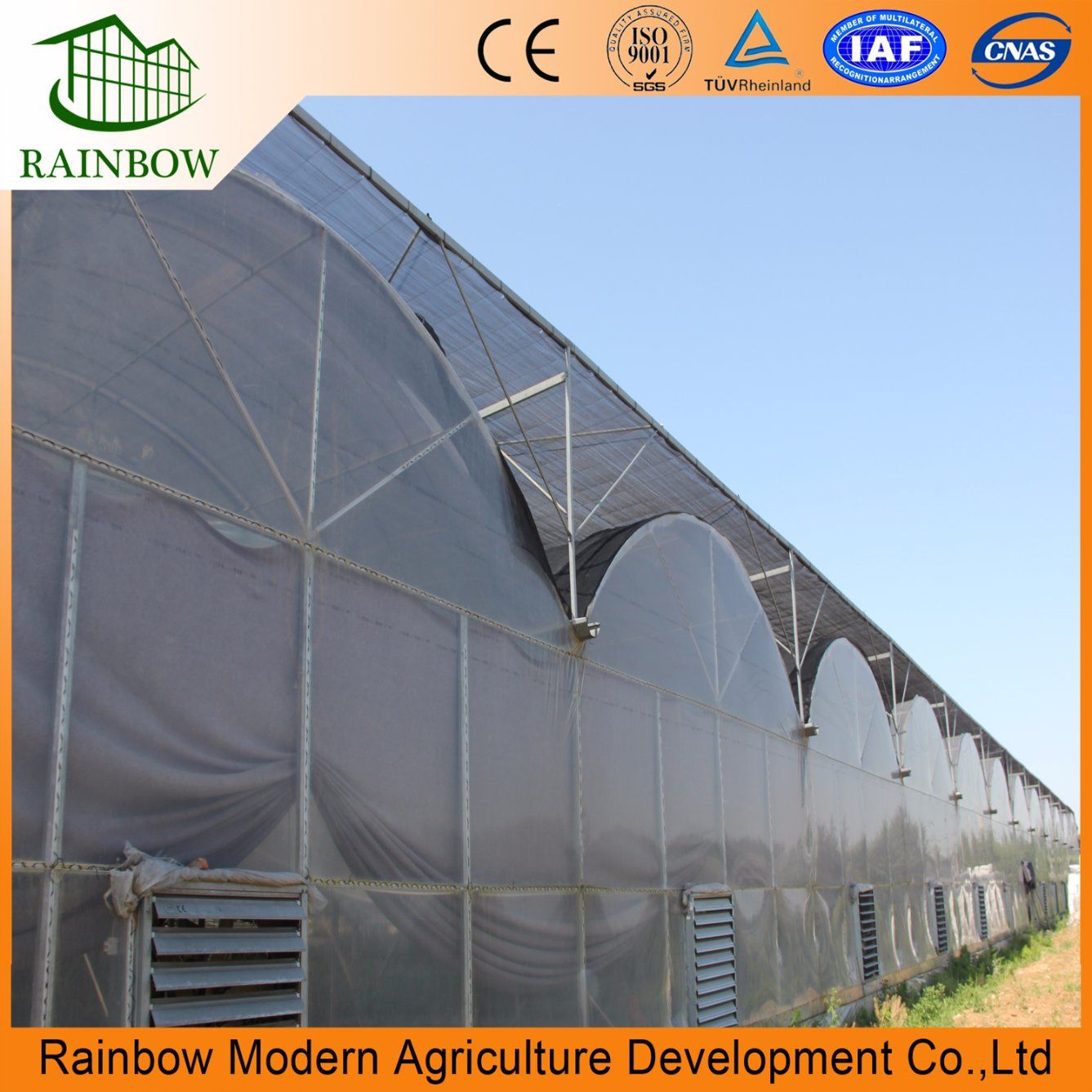Poly film greenhouse is the most cost-effective greenhouse and welcomed by the users. The traditional tunnel roof design is simple but strong. The polythene film can diffuse the light to protect the crop from burning and aid the photosynthesis, but it needs to change every 3-5 years. In the winter, especially in China. Double layer film can be laid with a pump to inject the hot air, not only to prevent the dissipation of the heat, but also to stop the cold air going in. So the inside temperature is guaranteed in cold weather. Poly film greenhouse anti-fog and anti-drip design will decrease the chance of the suffering from the disease of the plants . The huge roof ventilation and side ventilation will reduce the heat and humidity to make a temperate environment.
