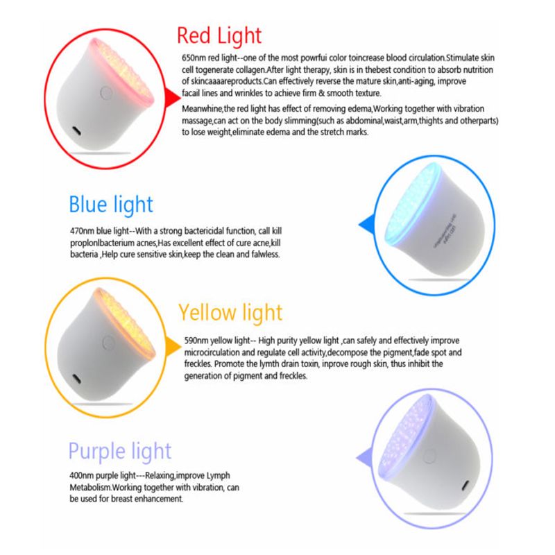 Therapeutic purple head with 40 LED lights 400nm Relaxing, Improve Lymph Metabolism. Working together with vibration, can be used for breast enhancement